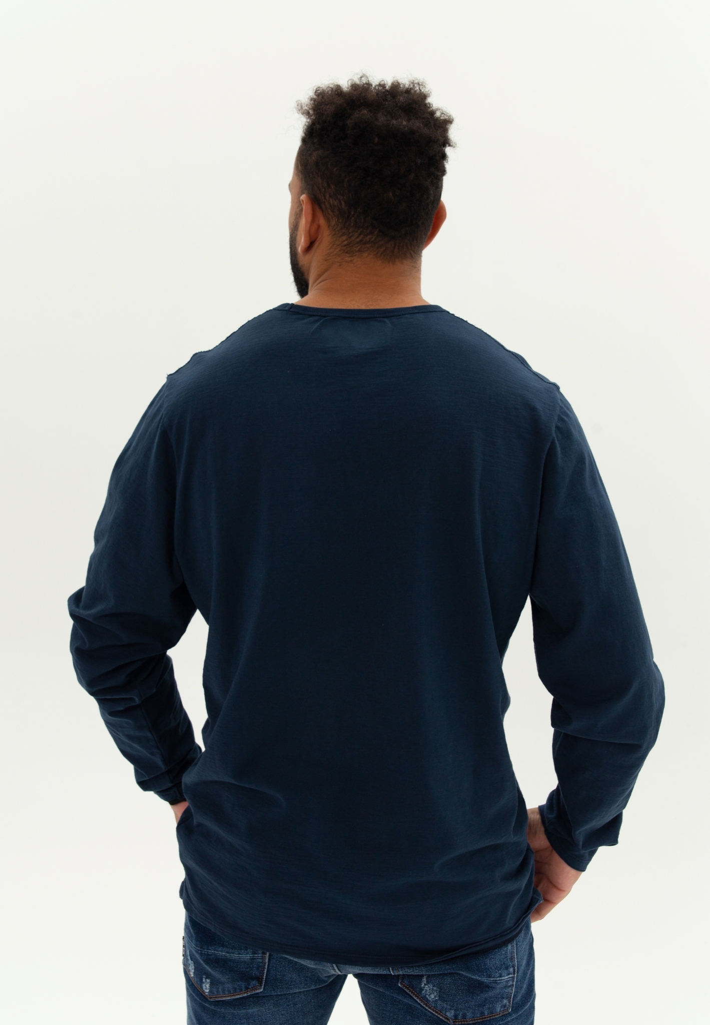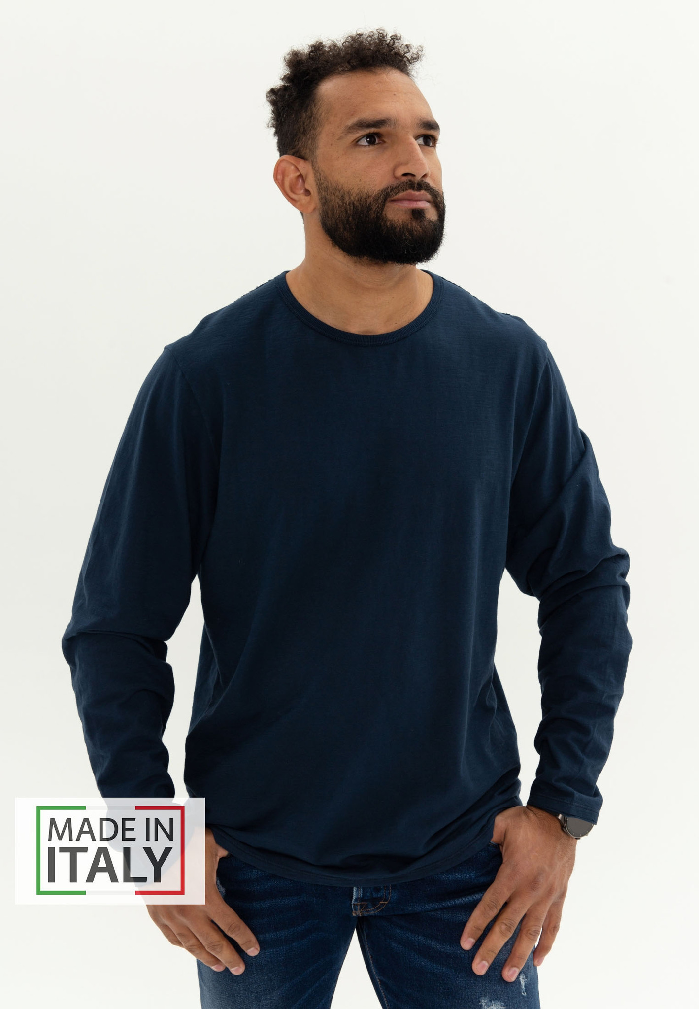 Этот лонгслив изготовлен вручную на семейной мануфактуре в Италии из 100% премиального хлопка. Трикотаж имеет среднюю плотность и относится к категории винтаж джерси. Продукт состарен по специальной технологии Warn in Wash. Принт нанесён красками на водной основе. Изделие пошито по мужским лекалам, имеет мужской размерный ряд, но подходит для обоих полов.